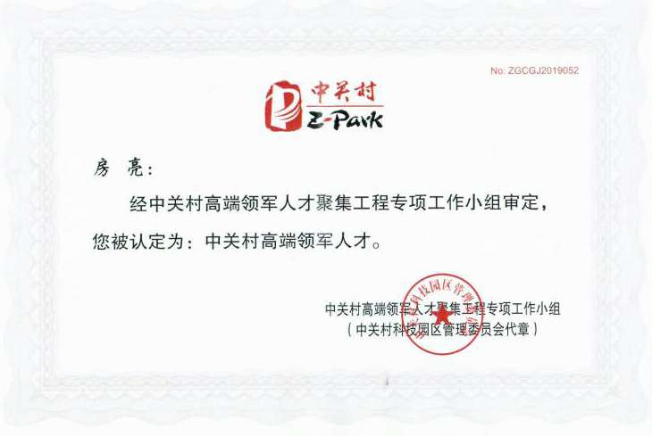 这一次房亮博士获得2019年度中关村高端领军人才的殊荣,不仅是对房亮博士创业领军能力的认可,也是对国科九游在线登录官网-九游(中国)未来发展的认可。