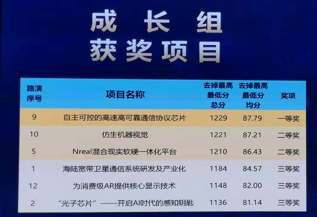 经过现场激烈的角逐,国科九游在线登录官网-九游(中国)的“自主可控的高速高可靠通信协议芯片项目”在总决赛中最终脱颖而出,以总分1229分的成绩斩获成长组第一名。